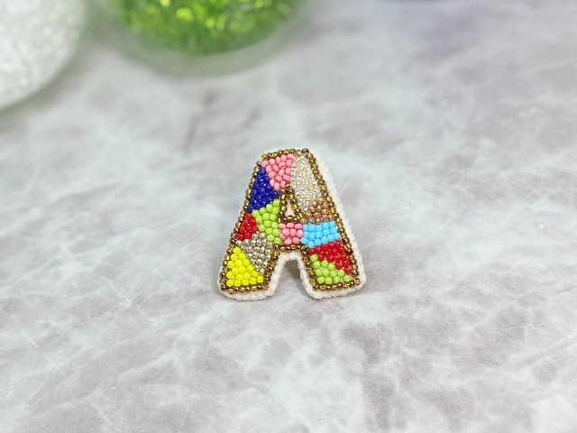 ビーズ刺繍ピンバッジ アルファベット A 南国風のカラフルな配色で仕上げた、アルファベット「A」のビーズ刺繍ピンバッジです。 小ぶりながら存在感があり、バッグやジャケットのワンポイントとして個性を演出できます。 ◯特徴 ・マルチカラーのビーズを使用し、明るくポップな印象 ・ゴールド系ビーズで輪郭を縁取り、高級感をプラス ・裏面は合皮仕上げ、ピンはキャッチタイプで着脱も簡単 ・男女問わず使いやすく、アルファベットモチーフ好きにおすすめ ◯サイズ 縦 約4.5cm × 横 約4.5cm (ハンドメイドのため多少の誤差があります) ◯素材 ・ビーズ(マルチカラー、ゴールド ほか) ・フェルト、合皮(裏面) ・刺繍糸 ・金属ピン(キャッチタイプ) ◯おすすめの使い方 ・バッグやポーチのアクセントに てんとう虫シンプルなトップスやデニムジャケットのワンポイントに ・名前やイニシャル使いでペアアイテムやギフトにも最適 ◯ご注意点 ・ひとつひとつ手作業で仕上げているため、色合いや形に若干の個体差があります ・強い力を加えたり水に濡らすと破損の恐れがあります ・小さなお子様やペットの誤飲にご注意ください ハンドメイドならではの温かみを持ったアルファベットモチーフ。 お気に入りのアイテムにプラスして、日常に遊び心を添えてください。