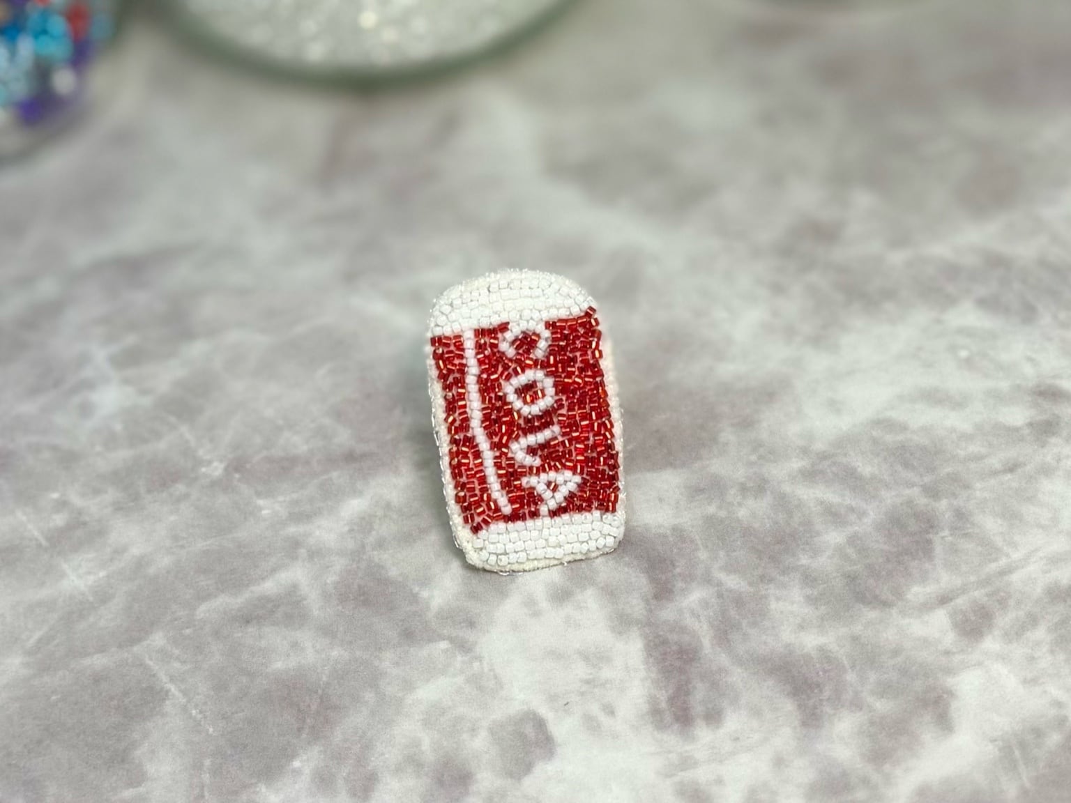 ビーズ刺繍 / ブローチ / ハンドメイド / コーラ / ポップ / 個性派アクセサリー / かわいい雑貨/ かばんアクセサリー / プレゼント / プチギフト / 刺繍アクセサリー / 手作り雑貨/ 赤いブローチ / 小さめブローチ / 推し活アイテム / バッグワンポイント