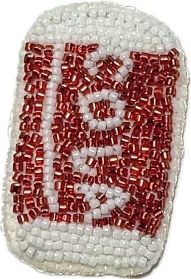 ビーズ刺繍ブローチ 【コーラ】(赤×白)/縦4.5cm × 横3cm