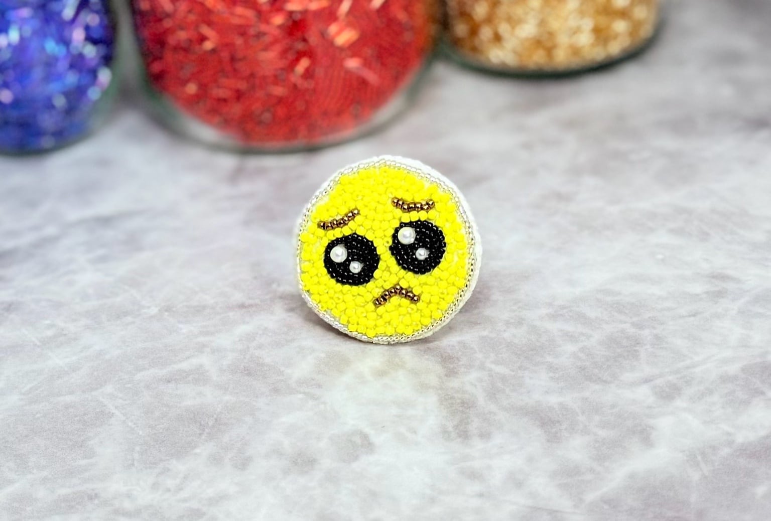ビーズ刺繍ブローチ ぴえん|ハンドメイド 刺繍ブローチ 表情ブローチ 個性的アクセサリー