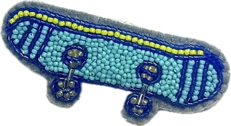 スケートボードモチーフのビーズ刺繍ブローチです