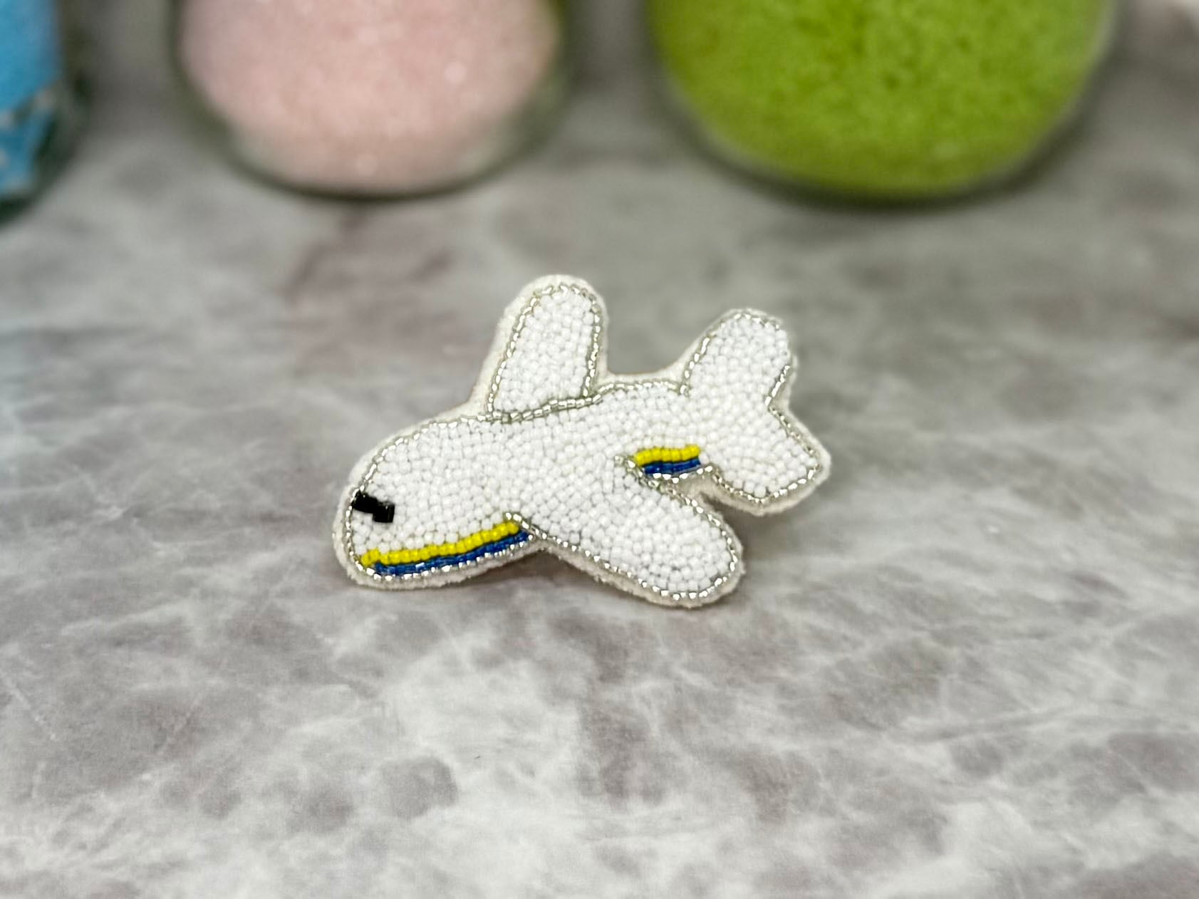 ビーズ刺繍ブローチ 飛行機 ひこうきモチーフ|旅行・航空アクセサリー ハンドメイド|ユニークブローチ|LadderLAB