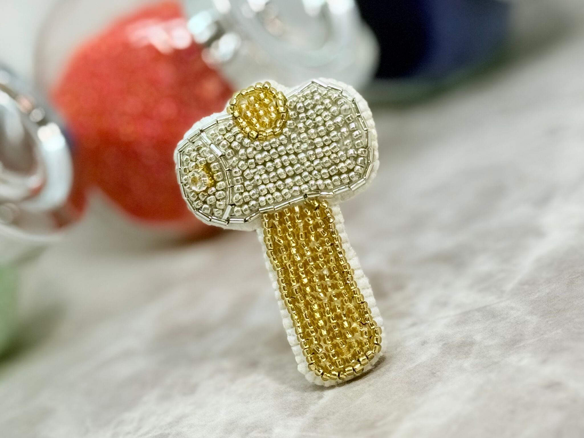 ビーズ刺繍で繊細に仕上げられた「トンカチ」ブローチは、ユニークで愛らしいデザインが魅力です!おしゃれなアクセサリーとして、日常のファッションに遊び心あふれるエッセンスをプラスし、見る人の視線を惹きつけるアイテムです。